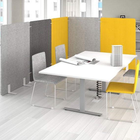 Raumtrenner verbinden Schallabsorption und Raumgliederung, sie sind besonders sinnvoll in offenen, flexibel genutzten Räumen. Hohe Effektivität im Nahbereich zwischen Schallquelle und Zuhörer, die Minderung der Ausbreitung von Stimmen und Arbeitsgeräuschen überzeugen vor allem in Großraumbüros, Lern-und Arbeitsbereichen. Große Räume können akustisch und visuell geordnet werden. Darüber hinaus können zusätzliche Funktionen wie Pinnwand, Whiteboard integriert werden.
