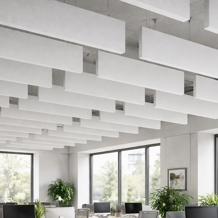 Akustik-Baffeln gehören zu den effektivsten Absorbern, wenn Räume hoch und hallig sind, eine offene Decke gewünscht oder erforderlich ist. Sie sind beidseitig als auch an den Kanten wirksam. Gezielte Planung bezüglich Anzahl, Abstand und Höhe führt zu deutlich reduziertem Nachhall, weniger Echo und Schallüberlagerung. Reihen, Cluster, unterschiedliche Längen etc. dienen der rhythmischen Raumgestaltung. Darüber hinaus erhöht sich die Sprachverständlichkeit in Restaurants, Hotels, Büros,Gemeinschaftsräumen, Schulen, Produktionsstätten.